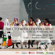 L’Esbart Sant Cugat posarà punt final al seu 50è aniversari amb un espectacle per celebrar la història de l’entitat i retre homenatge a totes les persones que l’han fet possible. Podeu comprar les entrades al següent enllaç: