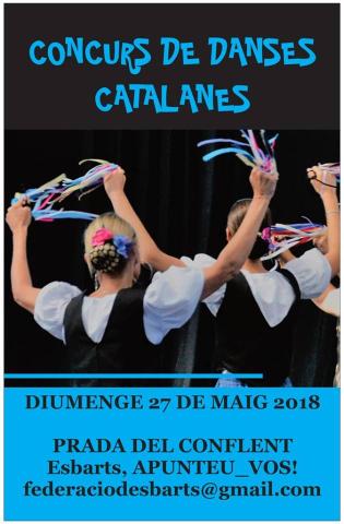 | | |  | | La Federació d'esbarts del Rosselló organitza, per tercer any, el concurs de danses catalanes a Prada de Conflent el dia 27 de maig de 2018.Els esbarts que hi vulguin participar poden enviar un correu amb les seves dades a:federaciodesbarts@gmail.comREGLAMENT DEL CONCURS DE DANSES CATALANESArticle 1 : El concurs és obert a tots els Esbarts de Catalunya nord i sud i als grups de la Federació d'Esbarts del Rosselló. | |